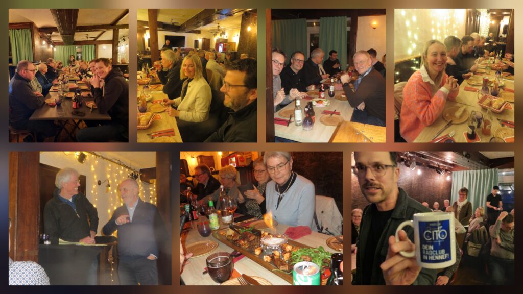 - die Rede unseres Vorsitzenden Jörg B., der die besonderen Ereignisse des letzten Jahres nochmal zusammenfasste und auch einen Ausblick auf die in 2026 anstehenden Vereinsfahrten gab. Hervorzuheben ist hier das MTB-Camp in die Region Rhön im Juni und die Rennrad-Vereinsfahrt im September 2026,