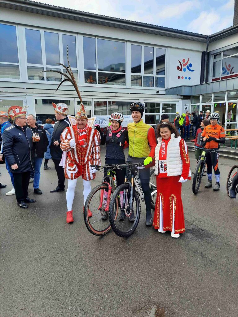 Pünktlich um 10.00 Uhr am Samstag, den 07. Februar 2026, gab  das Hennefer-Prinzenpaar (Prinz Uli  und Prinzessin Renate) bei milden Temperaturen und Sonnenschein den Start für die 6. Jeck im Dreck-Tour frei. Startort war die Gesamtschule West in Hennef.