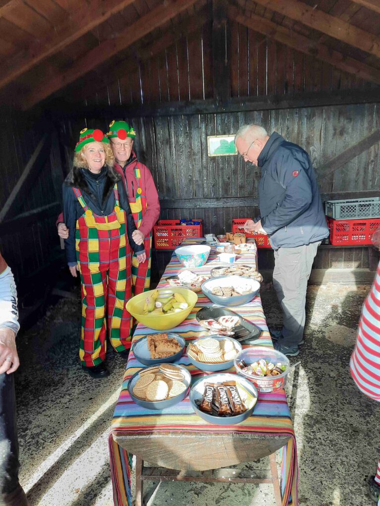 Die zwei Kontrollstellen, an denen man sich ausgiebig stärken und wieder Kraft tanken konnte, waren gut besucht. Viele Spaziergänger waren zunächst von dem Anblick der kostümierten Radfahrer überrascht, quittierten dies dann aber mit einem freundlichen Lächeln.