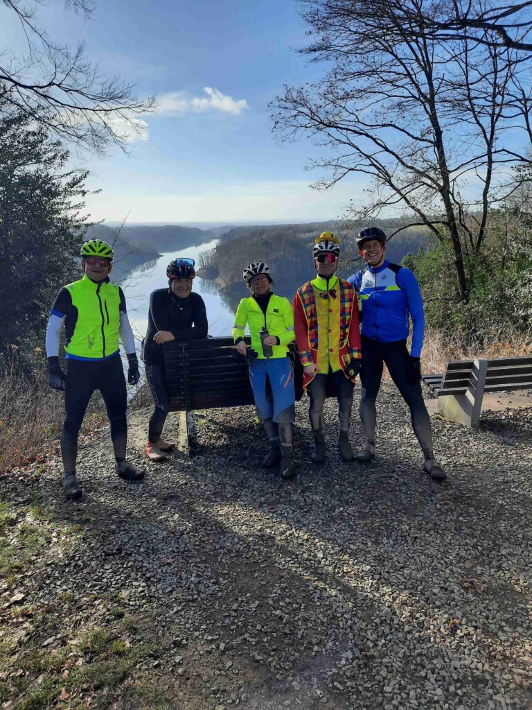 Angesichts der milden Temperaturen, dem Sonnenschein und den Höhenmetern, die insbesondere auf der 65 Km-Strecke zu bewältigen waren, kamen die Radfahrerinnen und Radfahrer ganz schön in Schwitzen. Manches Kostüm erhielt dadurch und durch die vielen Dreck-Spritzer einen ganz besonderen Charme. Die im Ziel angebotene Waschgelegenheit für die Fahrräder wurde diesmal sehr intensiv genutzt.